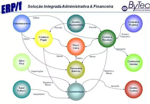 Permite o controle financeiro/orçamentário por centro de custo , contratos , processos e ainda conta corrente de clientes/fornecedores com ficha financeira, adiantamentos e orçamentos , e diferentes moedas.