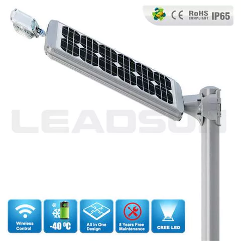 Descripción del producto <br /> Como producto hotsell de Leadsun, calle llevada precio de la luz sistema de energía solar solar integrado Super brillante uso exclusivo diseño todo-en-uno y estructura modular. Se integra panel fotovoltaico monocristalino, Cree LED, batería LiFePO4 y el controlador MPPT de alta eficiencia y el sensor de movimiento Panasonic en una concha compacto para lograr la instalación y el mantenimiento. <br /><br /> Excelentes actuaciones como la iluminación de alta eficiencia y la eficacia de conversión panel fotovoltaico, resistente al agua y buena en la disipación de calor. Lo que es más, tiene larga vida útil y muy conveniente para el mantenimiento. <br /><br /> No sólo las atracciones anteriores, sino también el sistema inalámbrico avance tecnológico excepcional. Al elegir un módulo inalámbrico (Bluetooth, GPRS o 433), los usuarios pueden controlar de forma inalámbrica la luz de la calle, el estado de funcionamiento del monitor, el modo de trabajo de encargo establecer o revisar los datos históricos de carga. Leadsun Precio de luz LED Solar Sistema Solar Farola Solar Power traer los usuarios finales de una manera más fácil de controlar su iluminación al aire libre que incluso antes. <br /><br /> Características del producto <br /> Material: Fundición de aleación de aluminio <br /> Energía solar: 40w con 25 años longlifespan <br /> OEM opcional: Sí <br /> Temperatura de color: 5000k <br /> Solar LED Gama: 5W, 8W, 10W, 20W <br /> Tipo de batería: La vida PO4 batería de litio <br /> Calificación: IP65, CE, RoHS <br /> Led de luz marca Osram / CREE <br /> Applicance: Patio de luz, la luz forma en la trayectoria, la luz de jardín, luz embarcadero, luz de la base <br /> Diseño: todo en uno <br /> Condiciones de pago: L / C, T / T, Western Union, Paypal <br /> MOQ: 1 unidades <br /> El tiempo de entrega: 10-20 días <br /><br /><br /> Aplicación del producto <br /> iluminación y carril maneras .Street <br /> .Bike Y Camino de iluminación <br /> .Park Y parking Iluminación <br /> Los refugios y zonas de paso .bus remotas <br /> cruces ferroviarios y .Pedestrian <br /> .Jetties, Pontones y muelles <br /> .Boat rampas <br /> .security Y Perímetro de iluminación <br /> .Mine Sitios / Industrial <br /> tamaño .Medium Bill Junta de iluminación <br /> .real Raíces de la cartelera de iluminación <br /> Torres de iluminación solar .mobile <br /> .Hire, Eventos y Desastres de iluminación <br /> .public Los baños y áreas de picnic <br /> .out Volver 'la agricultura y las estaciones de la agricultura <br /> Campos de juego de .children <br />